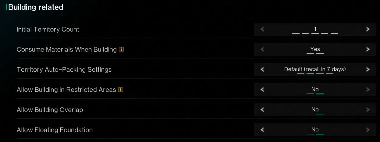建築ルールと物理制限を完全にカスタマイズ可能。サーバーホストはボタン1つで建築資源消費、物理ルール(重複・浮遊)及び領地管理方法を設定でき、「ハードコアなリアリズム」から「自由なクリエイティビティ」まで多様な建設モードを実現できます。