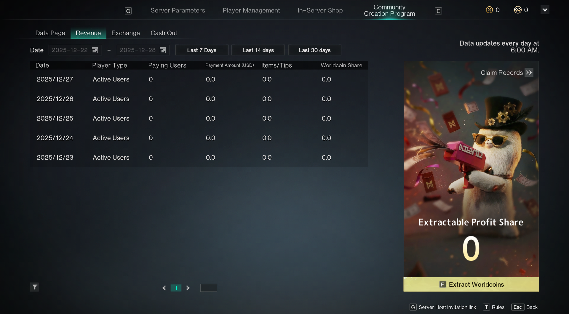 サーバーホストはここで日々の収益状況を確認し、日付を調整して任意の期間を検索できます。プレイヤータイプは新規ユーザー、アクティブユーザー、リターンユーザーに分類されます。