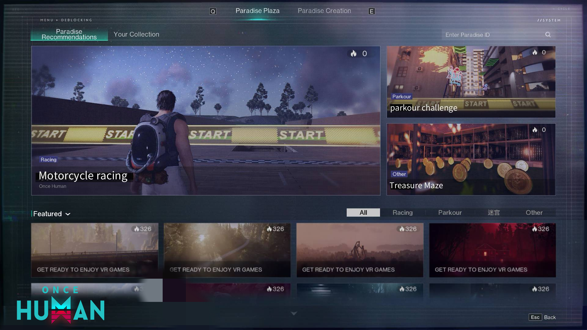 このモードのクオリティを上げるには、アイデアと能力のある超越者の皆様のご協力が不可欠だと考え、オンラインテストという形でのリリースを決めました。テスト期間中は皆様からのご提案とご意見を広く収集したいと考えています。FBプラットフォームからフィードバックをお寄せください。迅速に内容を確認し、最適化対応を実施いたします。Once Humanをより良いゲームにするため、皆様のご協力をお願いいたします。