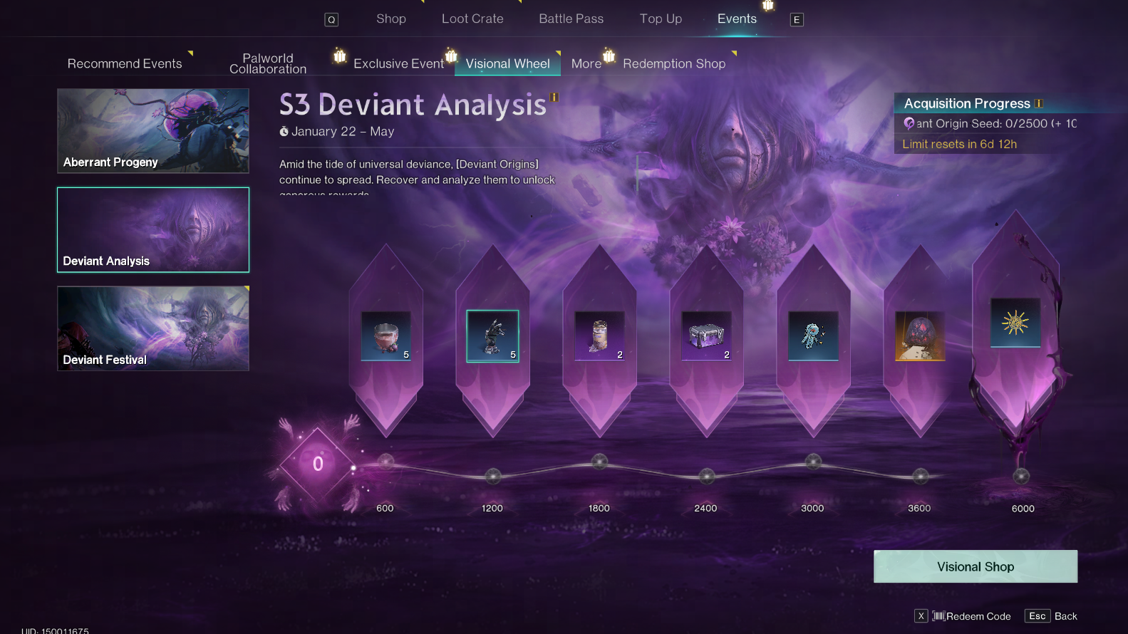 超越者はデビアントの原種を使用して、ショップで過去の異常現象の輪の報酬と交換できます。