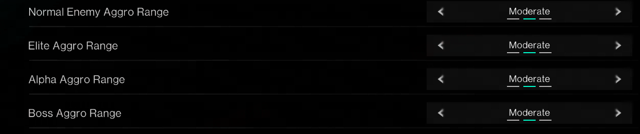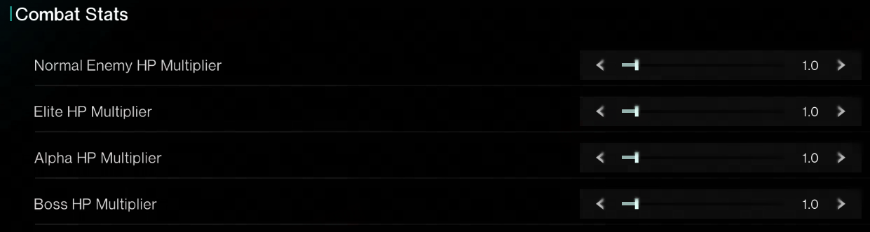 다섯 가지 크리처 관련 파라미터(HP, 데미지, 이동 속도, 어그로 거리, 경계 감도)를 조정할 수 있으며, 각 파라미터는 일반 몬스터, 엘리트, 우두머리, 보스 네 가지 유형으로 세분화됩니다.