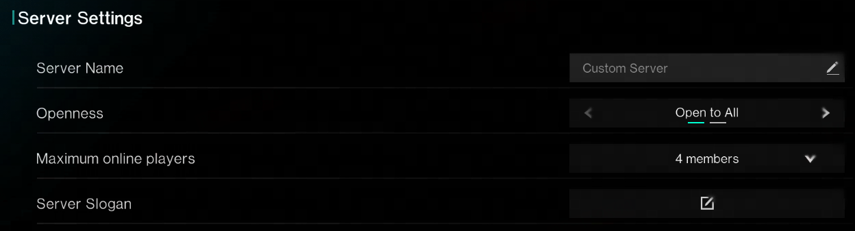 이 네 가지 설정은 서버 프로필을 완성하는 요소로, 이름 식별, 공개 권한, 수용 인원부터 선언 소개까지 전방위적으로 정의하여 독특한 게임 세계를 보여주고, 동호회 플레이어를 유치하며 이상적인 게임 세계를 만드는 데 도움을 줍니다.