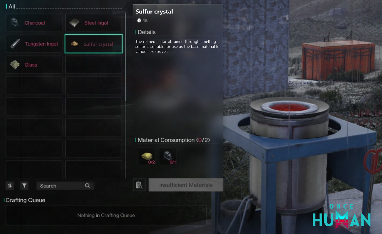 1. 새로운 아이템 유황 결정을 추가합니다. 해당 결정은유황을 제련하여 얻을 수 있으며, 폭발물과 총알의 제작 재료가 유황에서 유황 결정으로 변경됩니다.