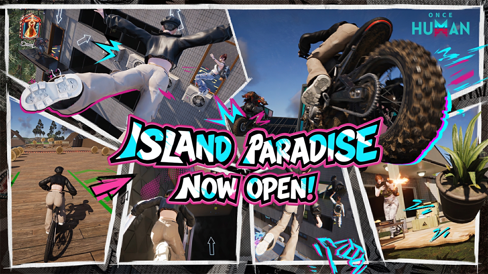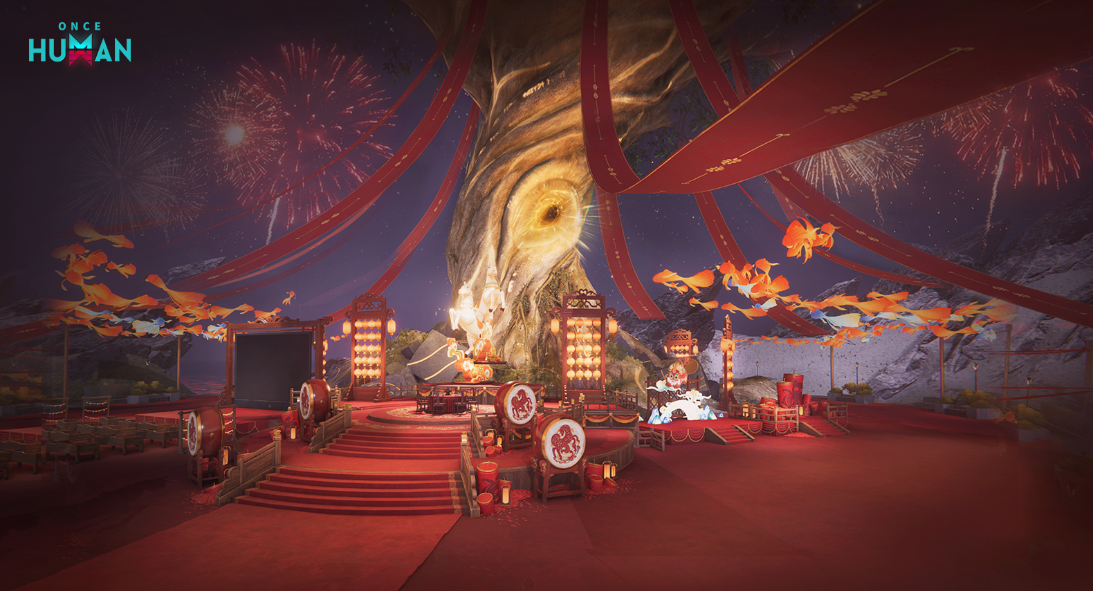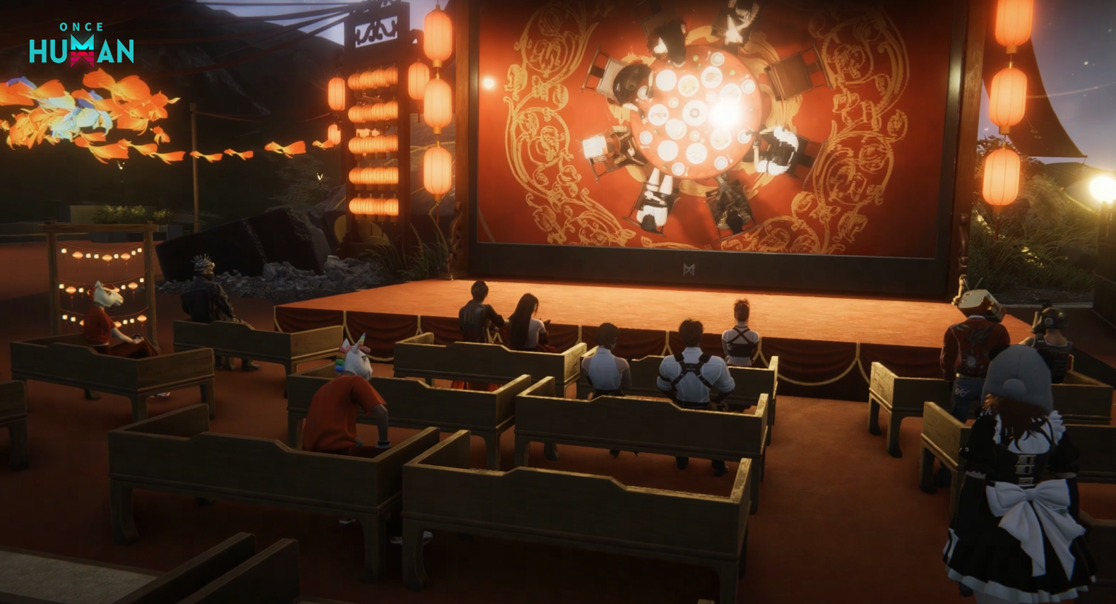 신춘도 중앙 광장의 대형 스크린이 켜졌으며, <Once Human>의 특색 있는 영상이 여기서 순환 상영됩니다.