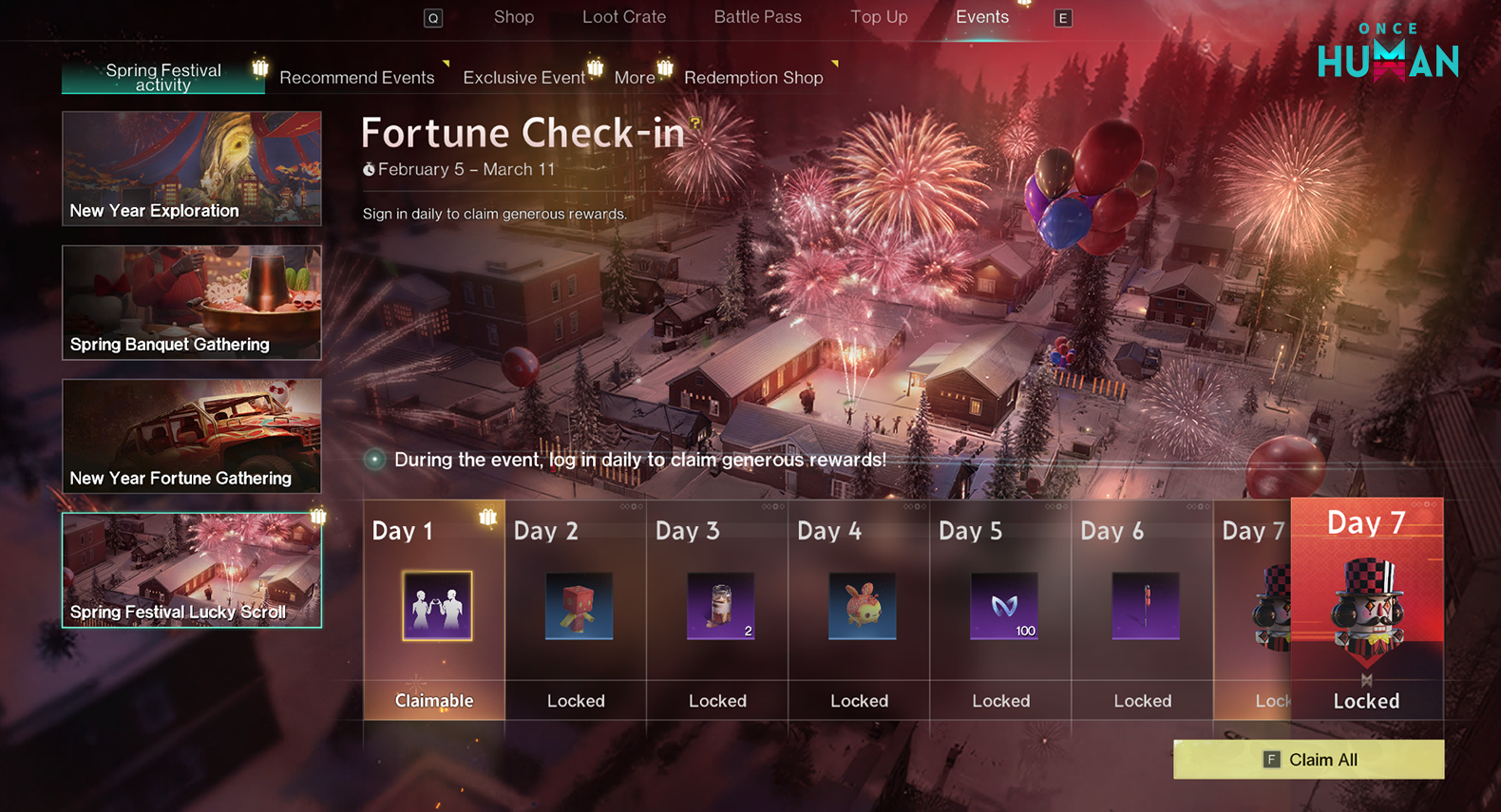 참여 규칙: 이벤트 기간 동안 메타는 활동 페이지에서 이벤트에 참여할 수 있습니다:https://www.oncehuman.game/m/20260205cjzd/kr/