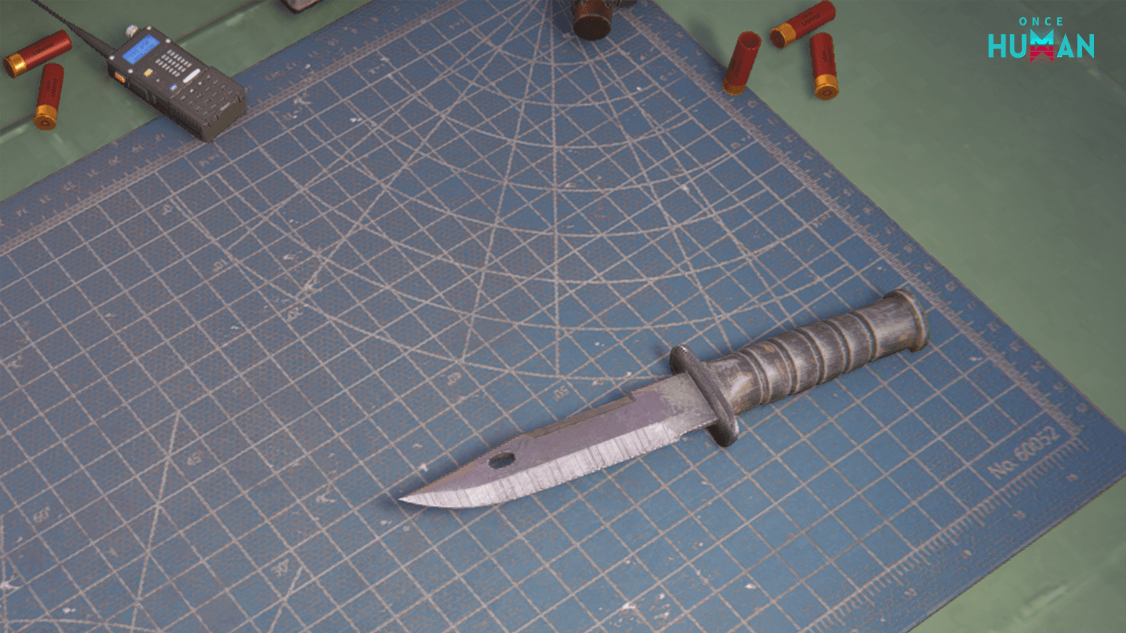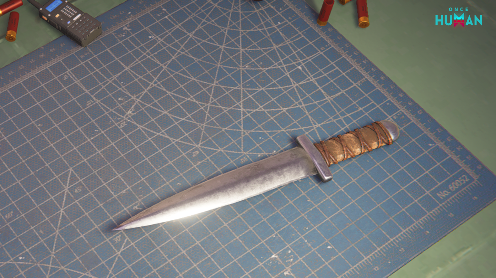 A melee dagger of Rare rarity. Can be crafted at an Intermediate Gear Workbench or better. Can be used underwater. Its Memetic is located below the Camping Knife.