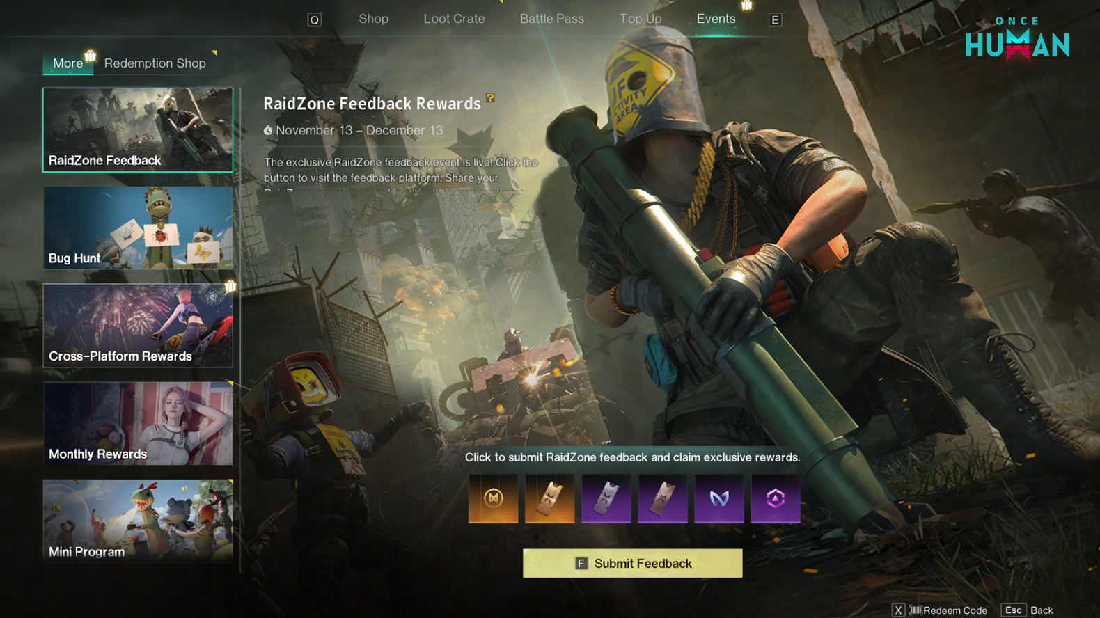 The exclusive RaidZone feedback event is live! From the event screen, select RaidZone Feedback > Submit Feedback to reach the Co-Dev Feedback Platform. Share your RaidZone experiences and suggestions to earn exclusive rewards!