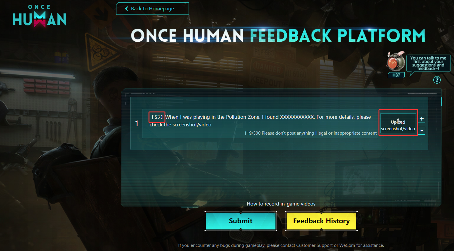 Feedback platform link: https://www.oncehuman.game/grfkpt/