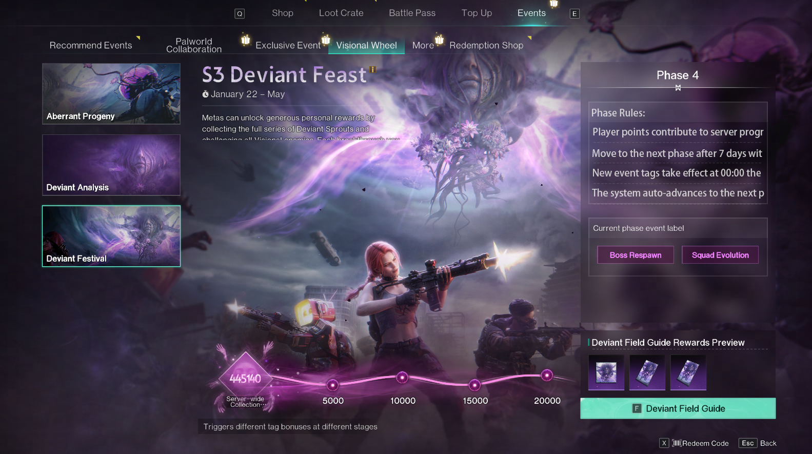2.每個伺服器的總收集積分達到不同階段,該伺服器會觸發不同數量的事件標籤,不同事件標籤會影響各類異變玩法,帶來不同的效果。