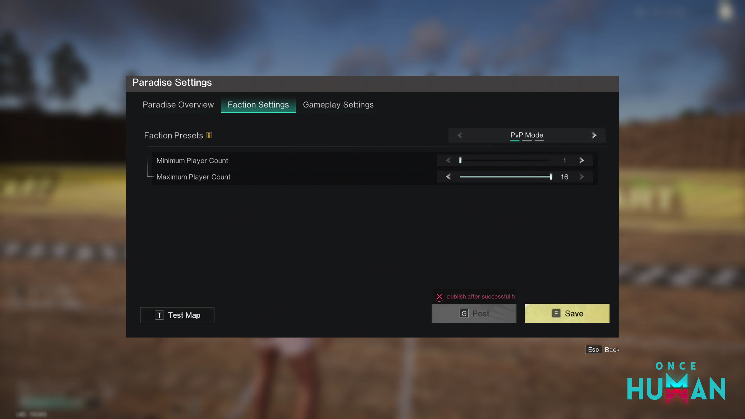 超越者可以修改玩法的陣營模式和參與人數,陣營分為對抗、合作、合作對抗,也可以自訂最大、最小的參與人數。